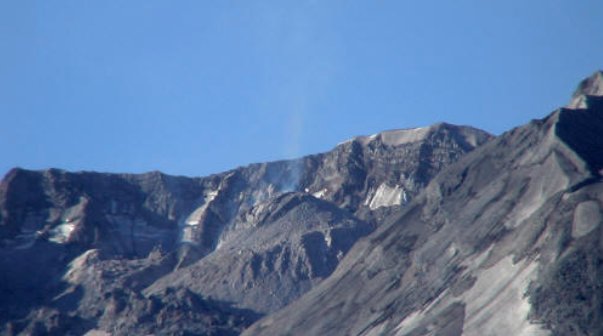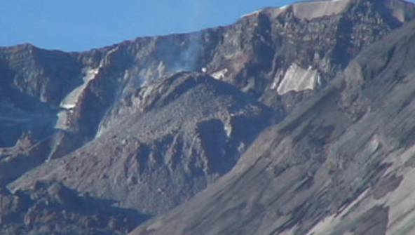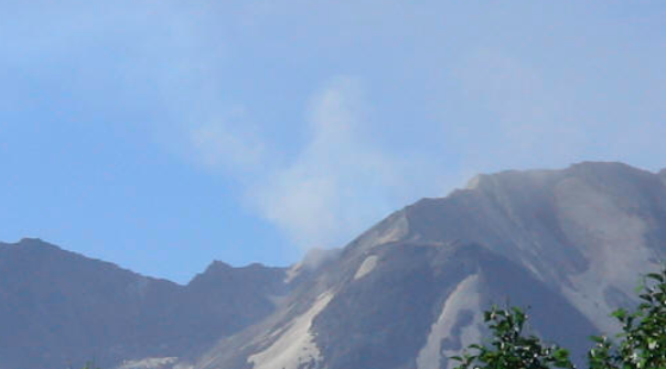 While I was walking, I felt the ground move, and shortly afterwards, I heard “thud” sounds… when I crested a hill, and could see the mountain, a dust cloud was rising above the crater rim… a small quake had triggered a landslide on the new dome… pretty cool.
