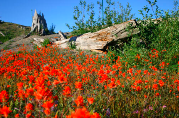 This is one of the best views of The Mountain that I know of… the junction of the Hummocks Trail with the Boundary Trail, that heads up to Johnston Ridge.