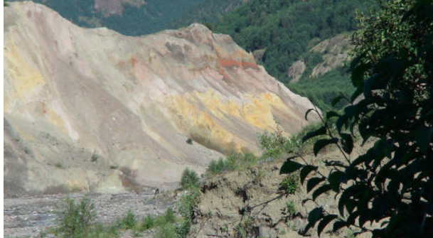 Cut by the river, you really get a feel for just how deep the land and mudslide was.