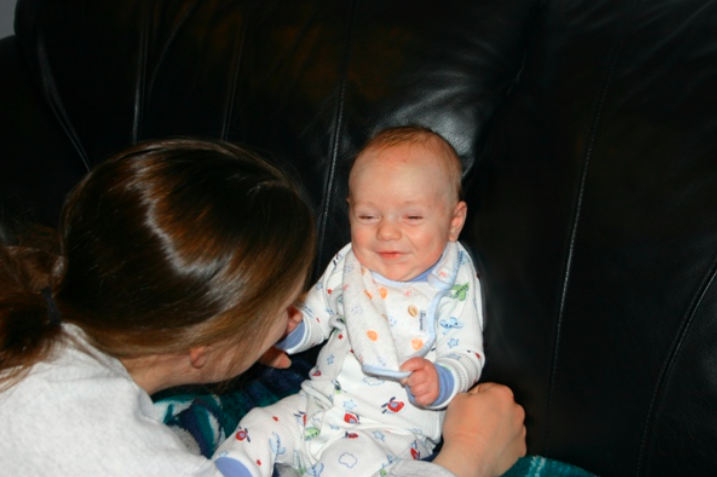 Playing wth Mom northwestjim Currently February 14, 2008June 14, 2019 1 Minute He’s laughing more and more… its fun! I really like his smile, too… he seems to put everythin into it! Share this: Share on X (Opens in new window) X Share on Facebook (Opens in new window) Facebook Like Loading... Related Published by northwestjim I'm a Christian, Husband, Father, and Red Sox fan who calls the Pacific Northwest home. View all posts by northwestjim Published February 14, 2008June 14, 2019