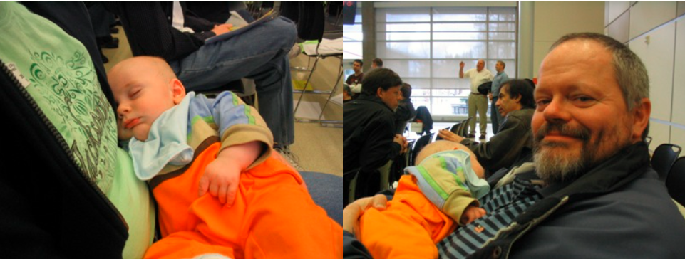 Just like at the Precinct Caucuses, he smiled at just aboutanyone who looked at him, and was a hit with the folks we satnear… He also got in some pretty good shuteye… caucuses aren’t exactly the most exciting things to go to.