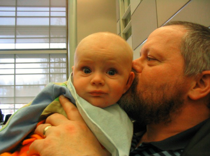 He seems to have the look that says… “Dad! We’re inpublic!” 🙂 I’m blowing raspberries, which made himlaugh the time before, but for the camera, he seemed to have adifferent expression… 🙂