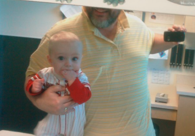 I brought him to the doctor’s for a follow-up — he sucks on hishands a lot, and it caused a pretty nasty rash and infection, soafter 10 days of treatment, he was in to make sure things werebetter (they were… he’s fine).