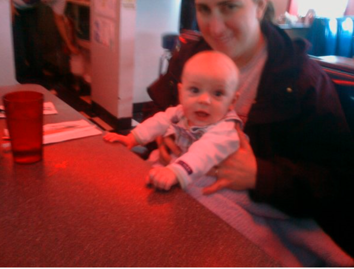 We went out to grab some lunch, and grampa showed up… the little guy was thrilled!