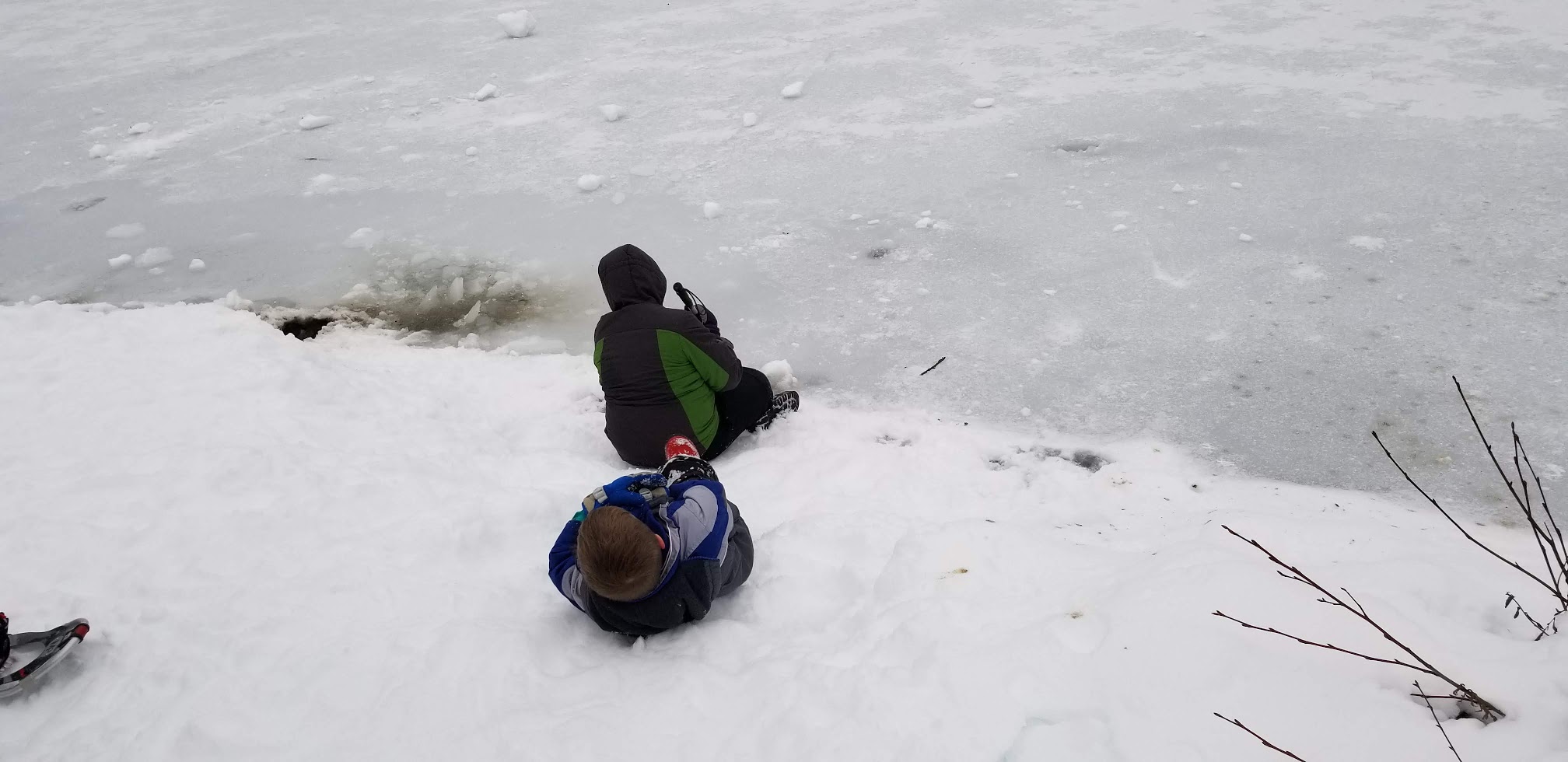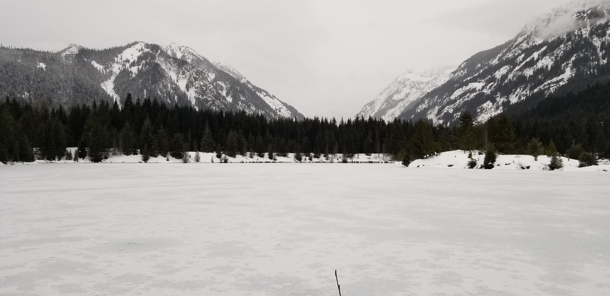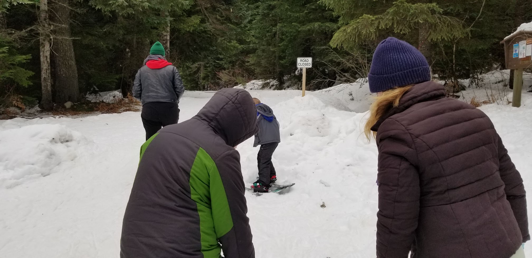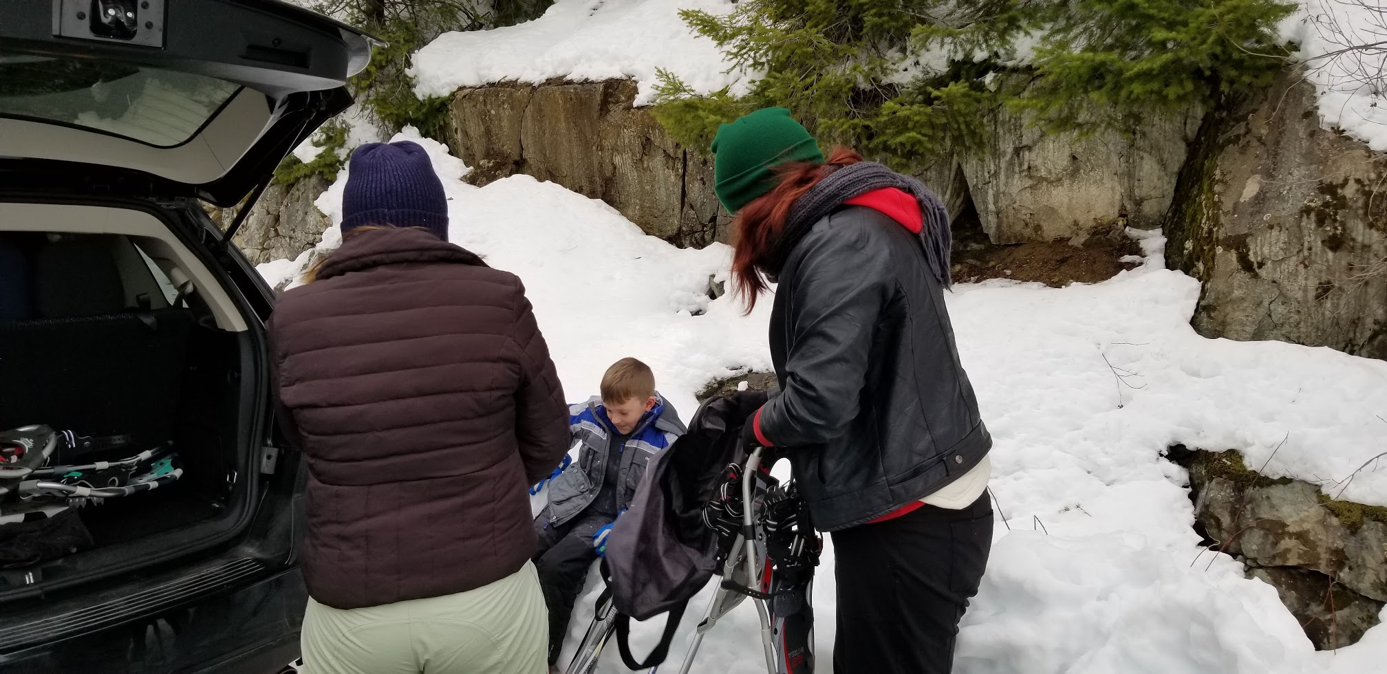 We went out on an outing with Auntie M. to dust off our snowshoes, and had a great time. We went up to Gold Creek Lake, which is a small park area in the Snoqualmie Pass corridor.