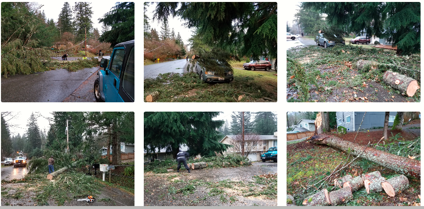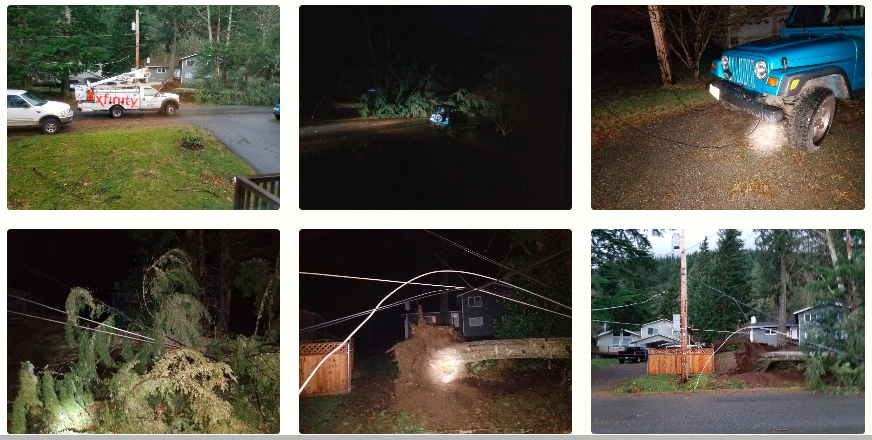 We had a wind storm that knocked down a tree across the street from us, taking out the pole that feeds our house. Another pole went down at the entrance to our community, and another pole was ripped out and leaning.