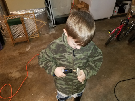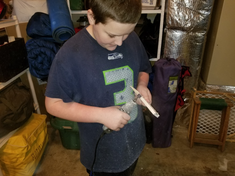 Its that time of year again… Pinewood Derby Time! This time, both of the not so little guys were scouts, so they both were making a car for the race. As usual, I prepped the axles while I helped them work on the car itself