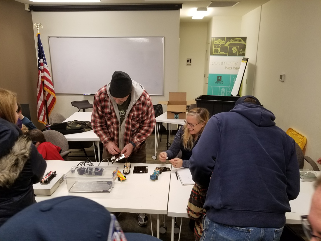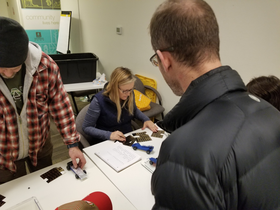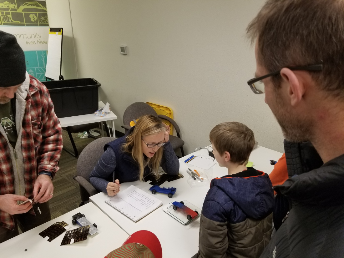 When we got to the weigh-in, our cars were overweight, so we did a LOT of grinding… but we got them to spec in time, and entered the cars in the race.