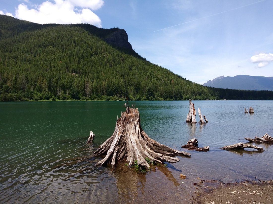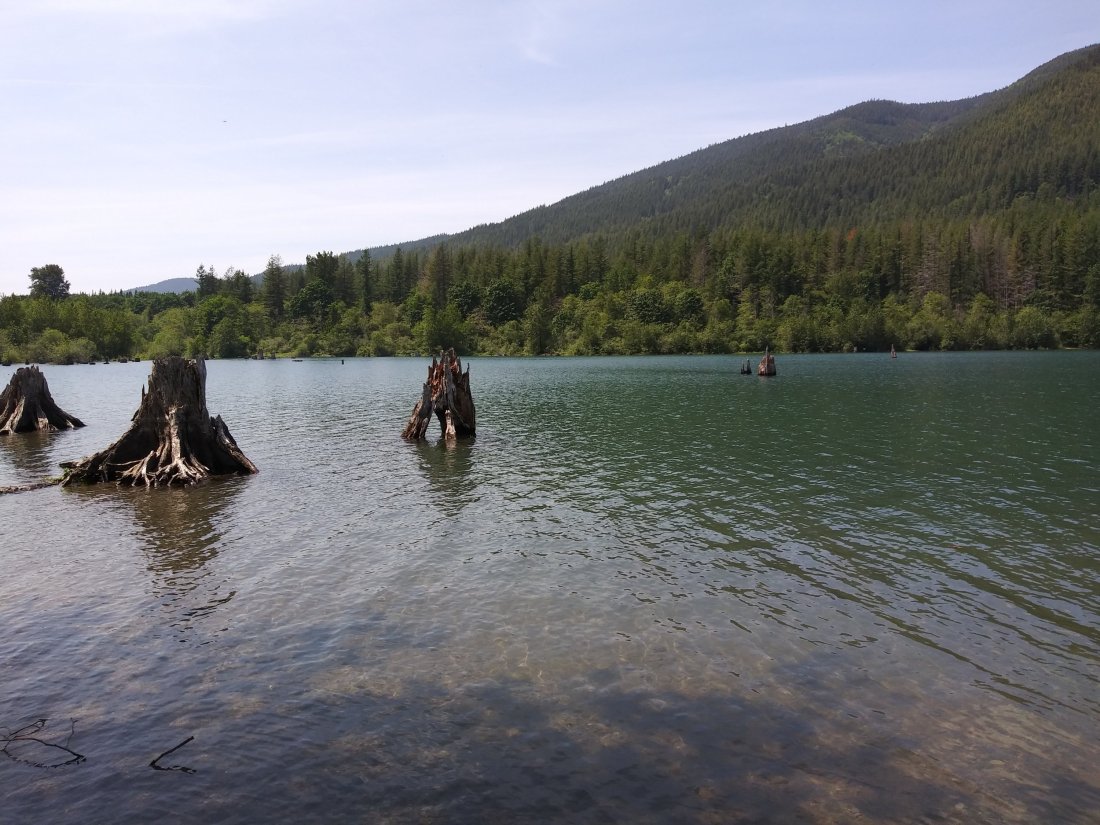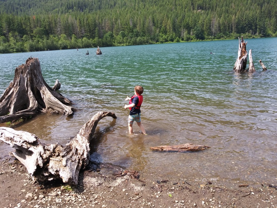 I’m in the water, here, but you can’t really tell… the littlest guy wanted to ensure the stump and water were in the picture. =]