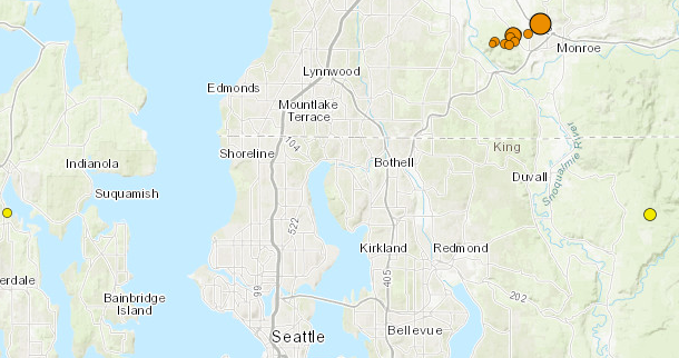 The quake was felt as far north as Vancouver, BC, over to Wenatchee, and south of Olympia, a pretty sizable region.