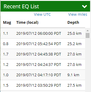 Later, I heard on the radeio that a series of aftershocks have happened since the initial quake, and they were following the general fault zone that is connected to Seattle, so I checked it out on the map… the grouping is interesting, but the aftershoks have been relatively small.