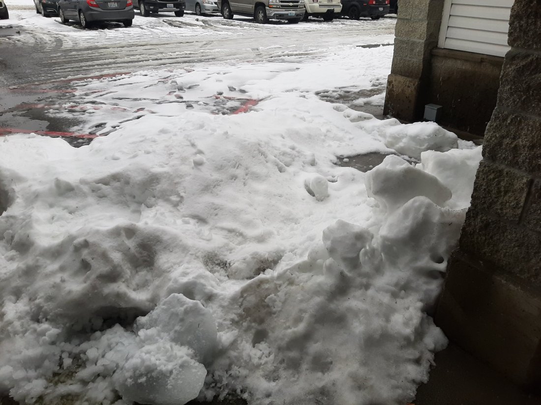 A lot of times that we’ve been up here, the snow pile in this spot has been as high as the roof line, but this year it’s not even knee deep.