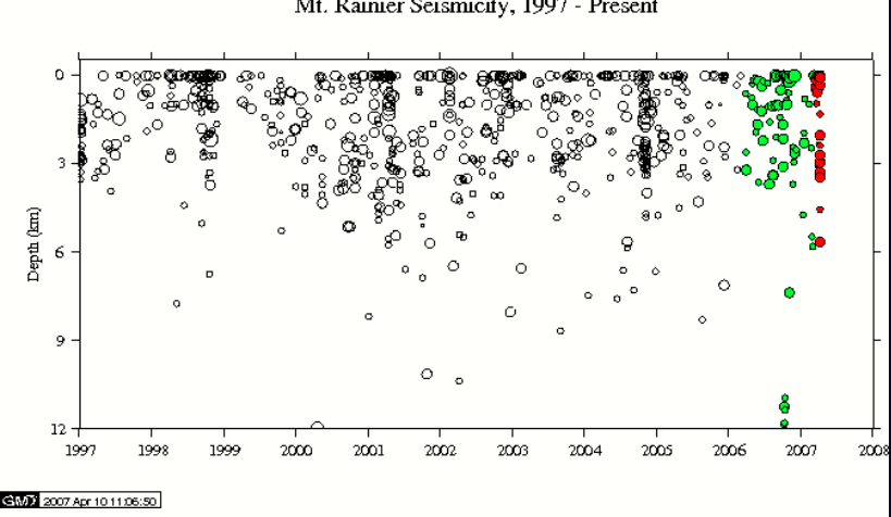 Remarks: History of massive debris avalanches and debris flows. Occasional very shallow seismicity. … Largest of the Cascade volcanoes. A mudflow caused by steam explosions about 5,700 years ago was one of the largest known in the world. Expected to erupt again within the next hundred years; hazards consist mainly of mudflows, floods, and fallout of tephra