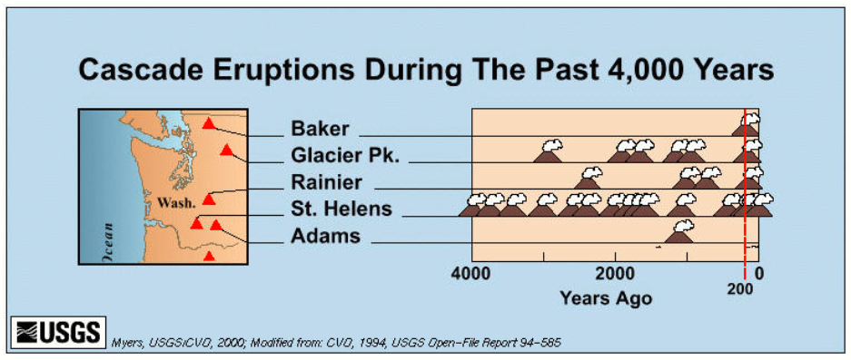 Mt St Helens is by far the most active volcano in the Pacific Northwest. Its latest eruption was in 2004, which was followed by a period of dome building which halted in early 2008.
