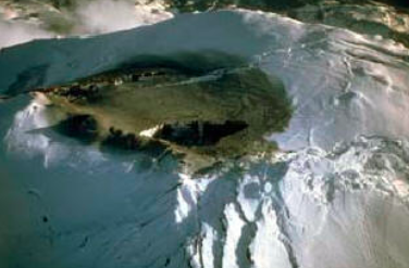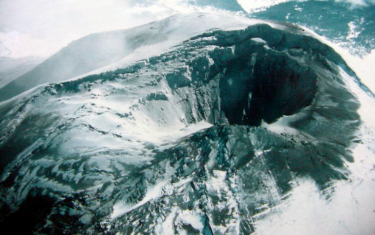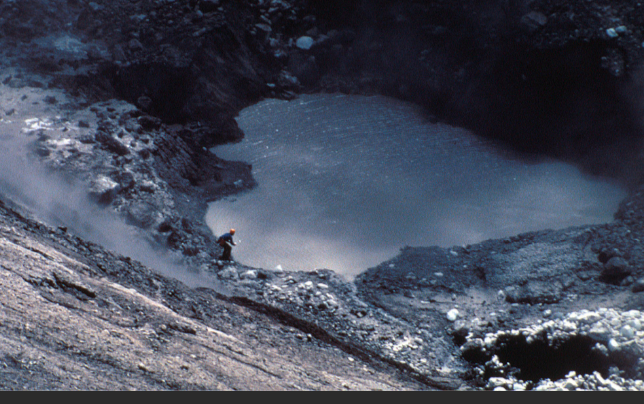 The bulge also had the effect of widening and deepening the crater. Warm steam, rising out of the base of the crater, melted glacial ice, and formed a lake.