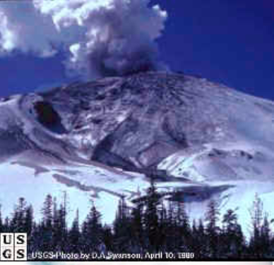 One week later, the mountain released material, marking the first volcanic eruptions in the conterminous United States since 1914 (Lassen Peak). On March 27th, the mountain smudged the usually pristine snow at her summit with its first puff of ash. No one on the ground knew what had happened at first because the top of the mountain was encased in clouds for her first show. The small explosion left a 250 foot wide crater in the otherwise perfect cone. On March 30th there were a record 79 earthquakes recorded on the mountain.