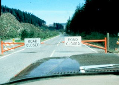 For safety reasons, “Red Zone” and a “Blue Zone” rings were mapped out around the mountain. Road blocks, like these on Route 504, were placed around the perimeter of the zones to limit traffic.