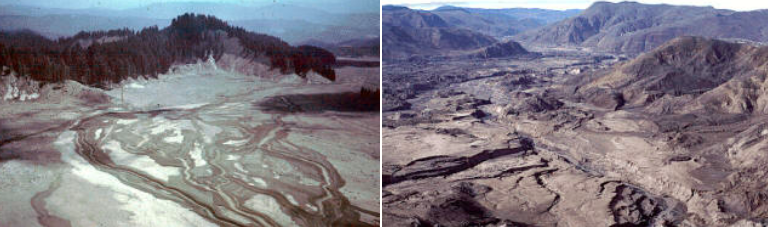 Mud, manufactured from melting glacier ice, the north face of the mountain, and countless trees swept down the Toutle River, wreaking havoc, and changing the region forever. The valley floor was left flattened, and 300 feet higher than it had been before the blast.