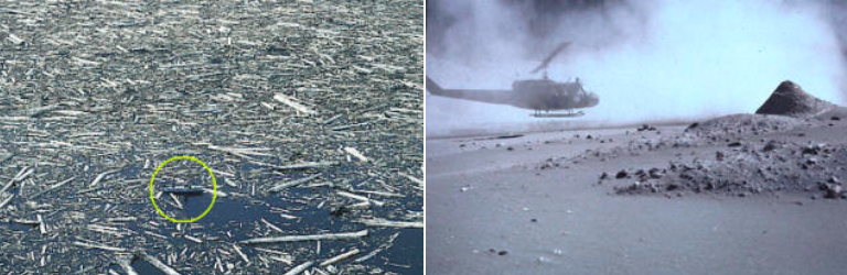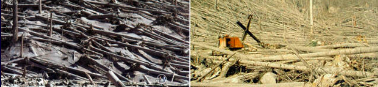 Logs, cut by the lateral blast, and debris were floated in a mud that had the consistency of cement