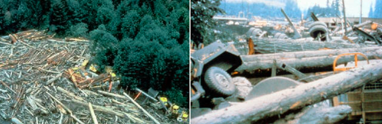 The damage from the eruption was widespread. The amount of force involved in the blast is mind boggling. 1/3 of the mountain’s mass was moved in one day.