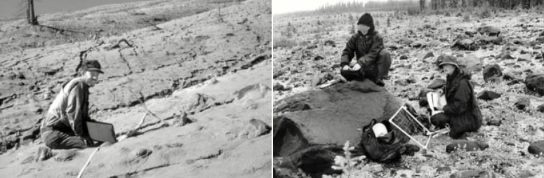 Above, you can get a sense of the scale in the pictures… the circle in the lower right shows two scientists taking readings from the ash.