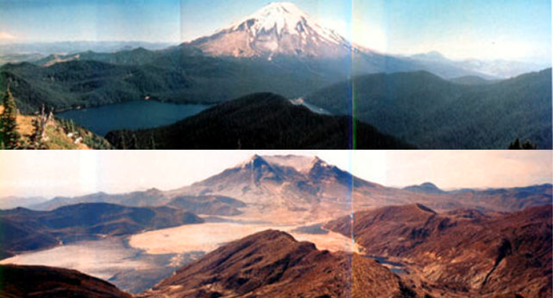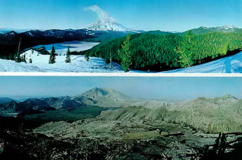 This view is a before and after, from Johnston Ridge. The left was taken the day before the blast, on May 17… the one on the right was taken in September.
